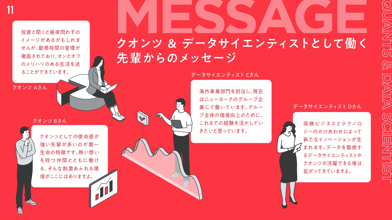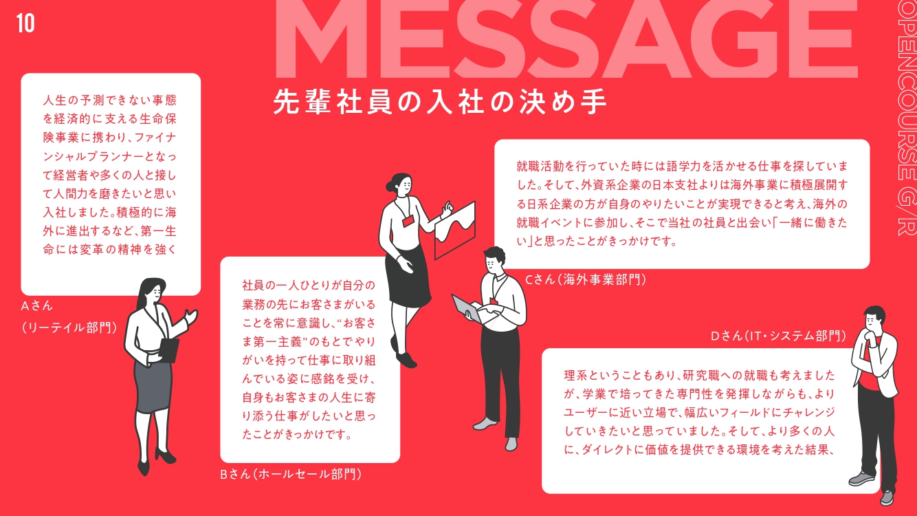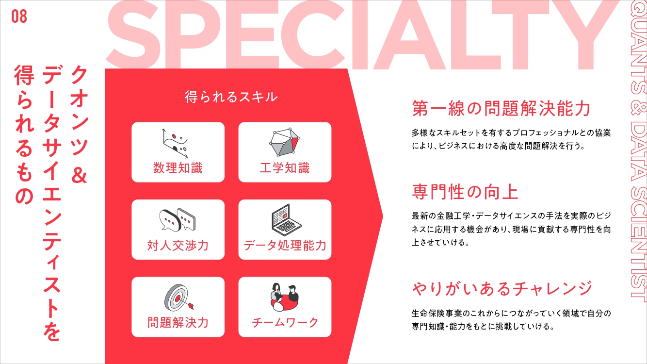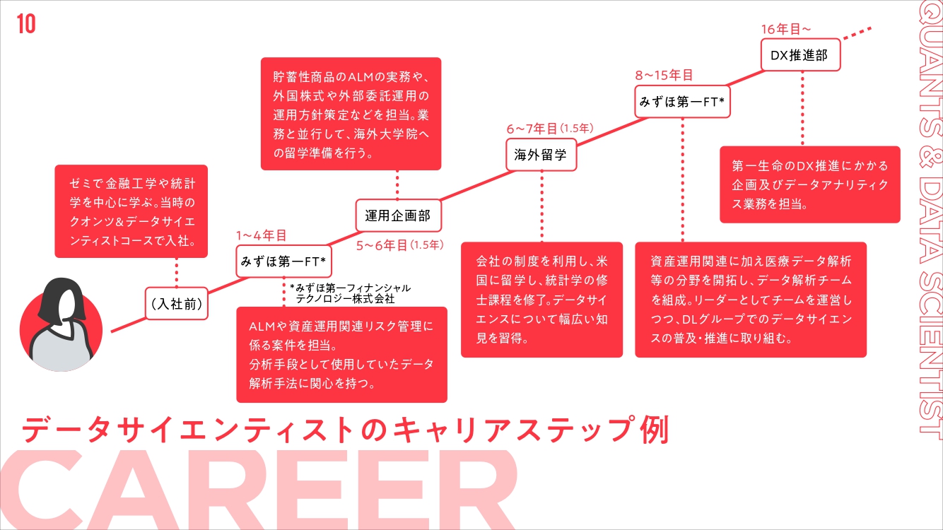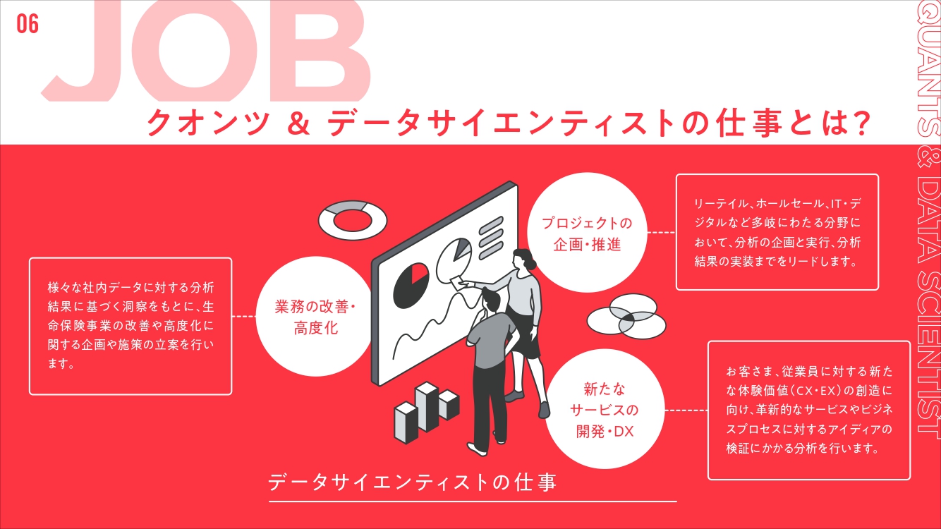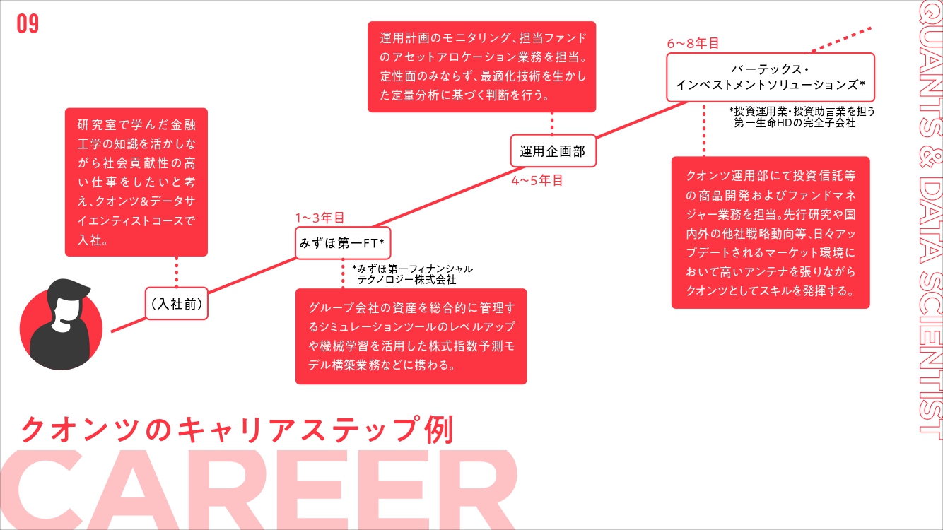 【オープンコース】基幹総合職(G型・R型)、アクチュアリーコース、クオンツ&データサイエンティストコース、建築・不動産コース、IT・デジタルコース、資産運用コース、海外コースの中からいずれか1つと併願が可能です。