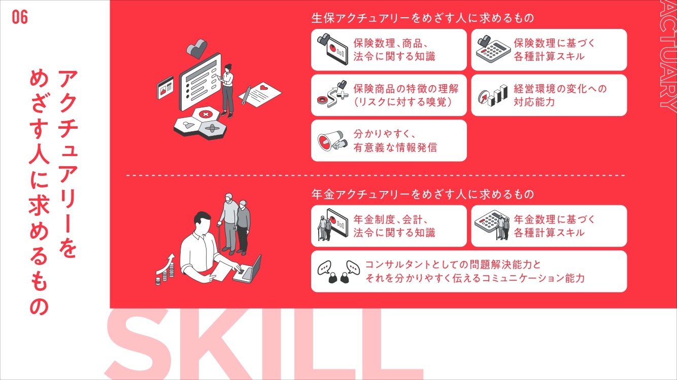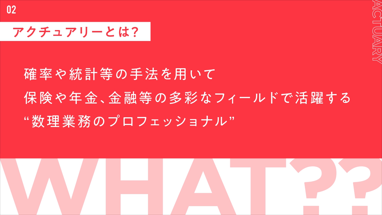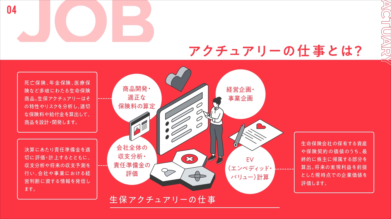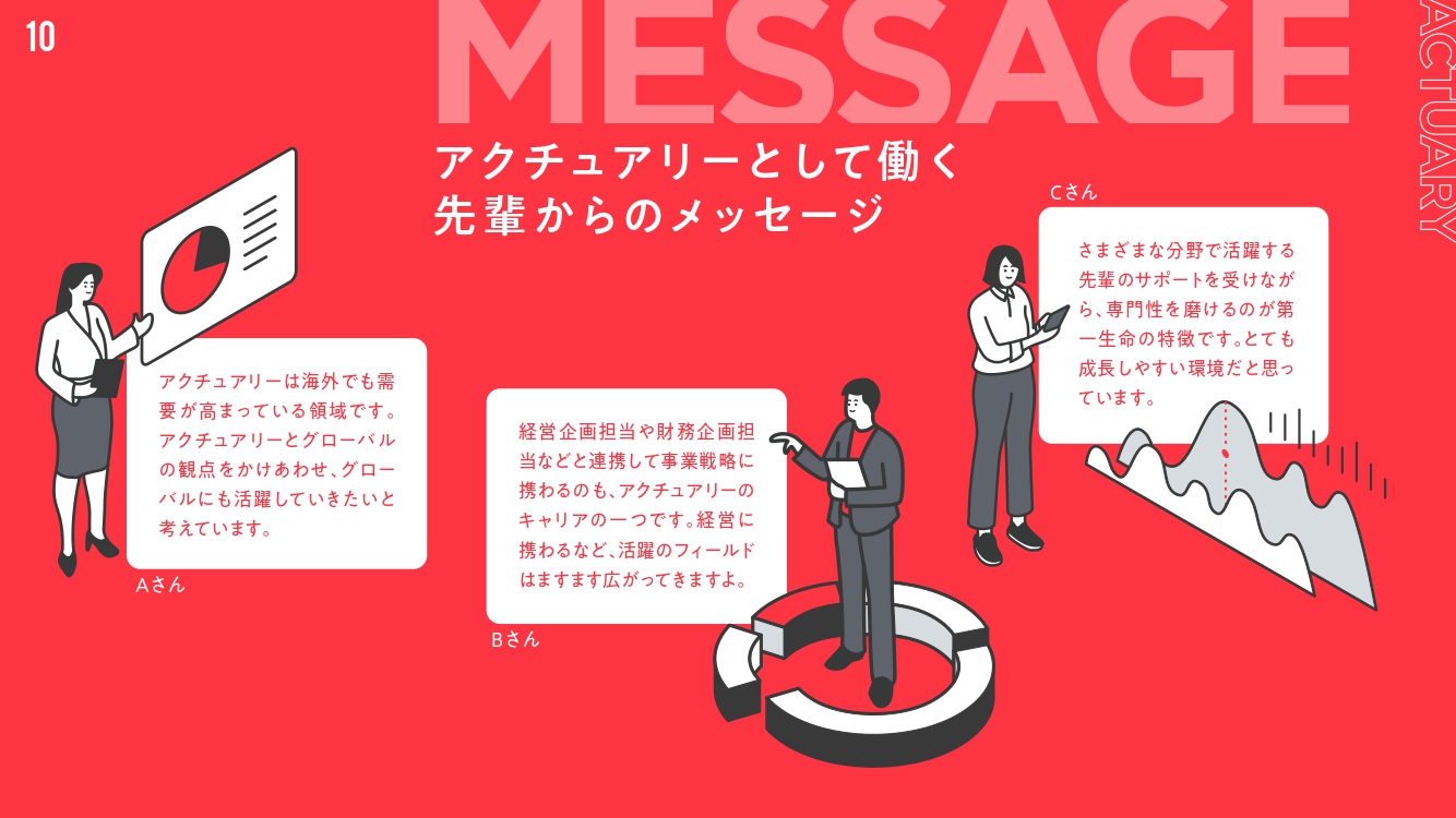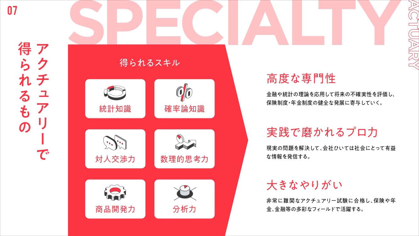 数理的手法を駆使して不確定な事象を解析し、商品開発やリスク管理、経営企画などの業務を行う保険数理のスペシャリストとして活躍が可能なコース。