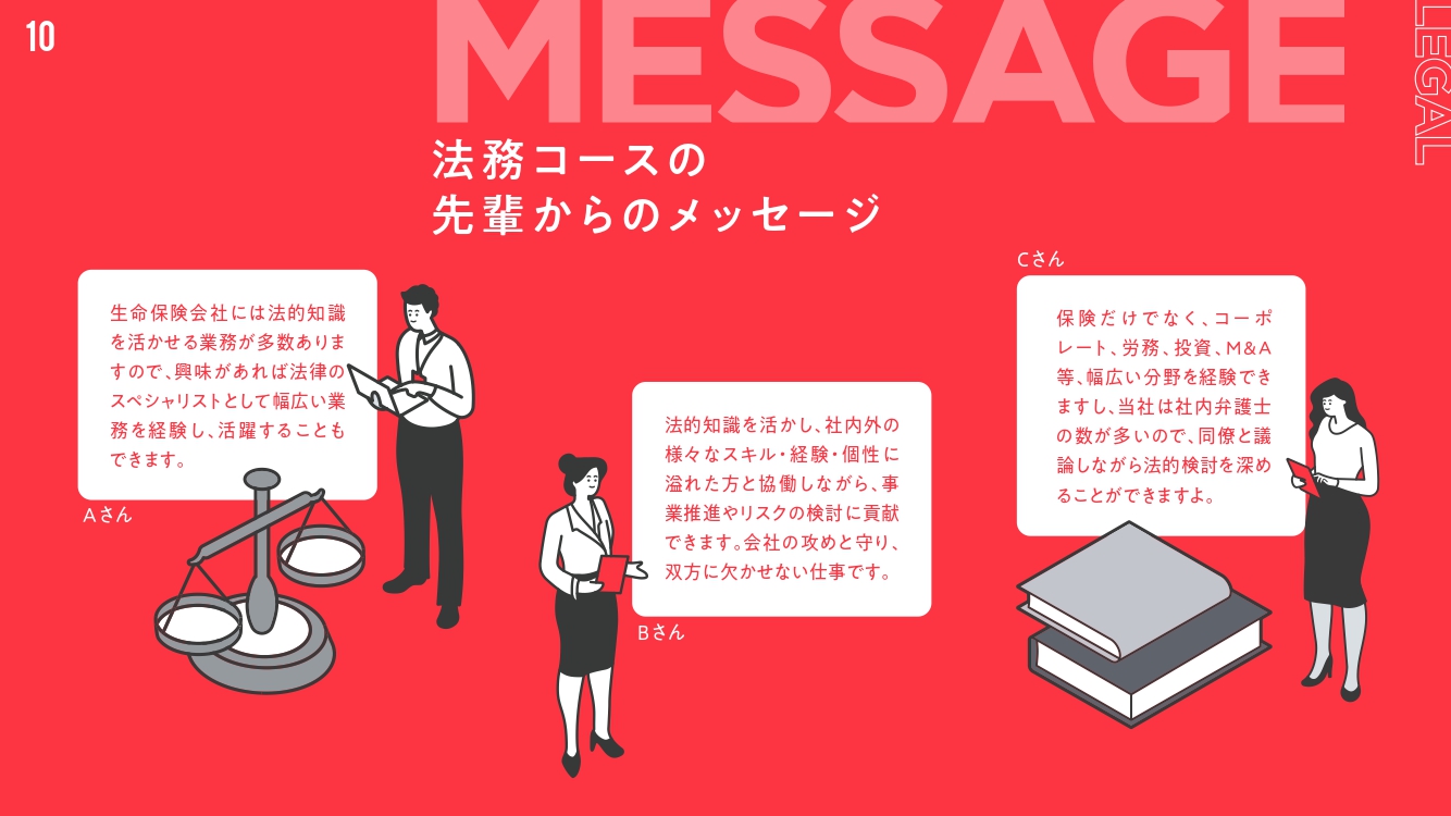 【オープンコース】基幹総合職(G型・R型)、アクチュアリーコース、クオンツ&データサイエンティストコース、建築・不動産コース、IT・デジタルコース、海外コース、会計・税務コースの中からいずれか1つと併願が可能です。
