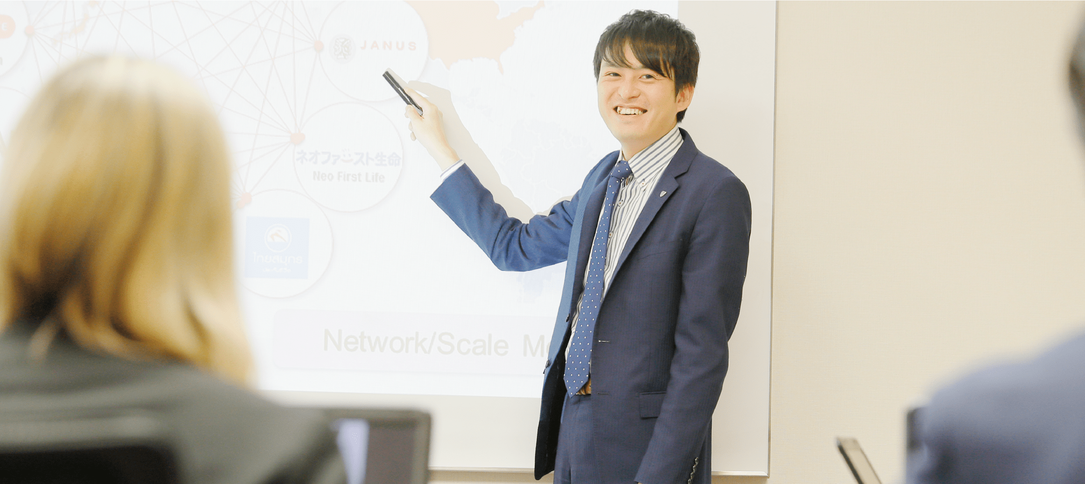 第一生命グループ全体を見渡して俯瞰する力はもちろん、課題の本質を見極める力や困難な課題を解決する力が求められています。また、それぞれの業務フィールドにおけるプロフェッショナルであるとともに、他部門やグループ各社との合意形成を図っていくための高いコミュニケーション力やリーダーシップも求められています。