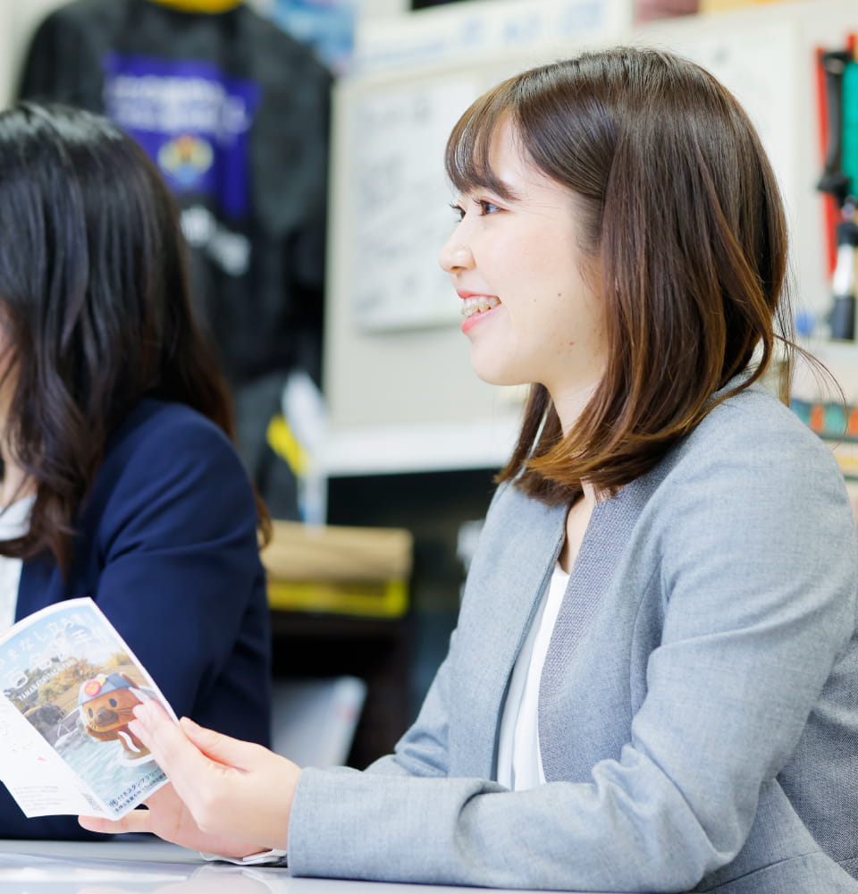 私が働いている甲府支社は、山梨県内にある9つの営業オフィスを管轄していて、約270名の営業員が在籍しています。 私の仕事は、支社の行事やイベントの企画運営から業績管理、販売促進のための施策検討、さらには営業員の金融リテラシー向上を目的とした研修の担当などです。ほかにも社内活動として甲府支社が独自で行っている「健"幸"経営」を推進するプロジェクトにも携わっています。