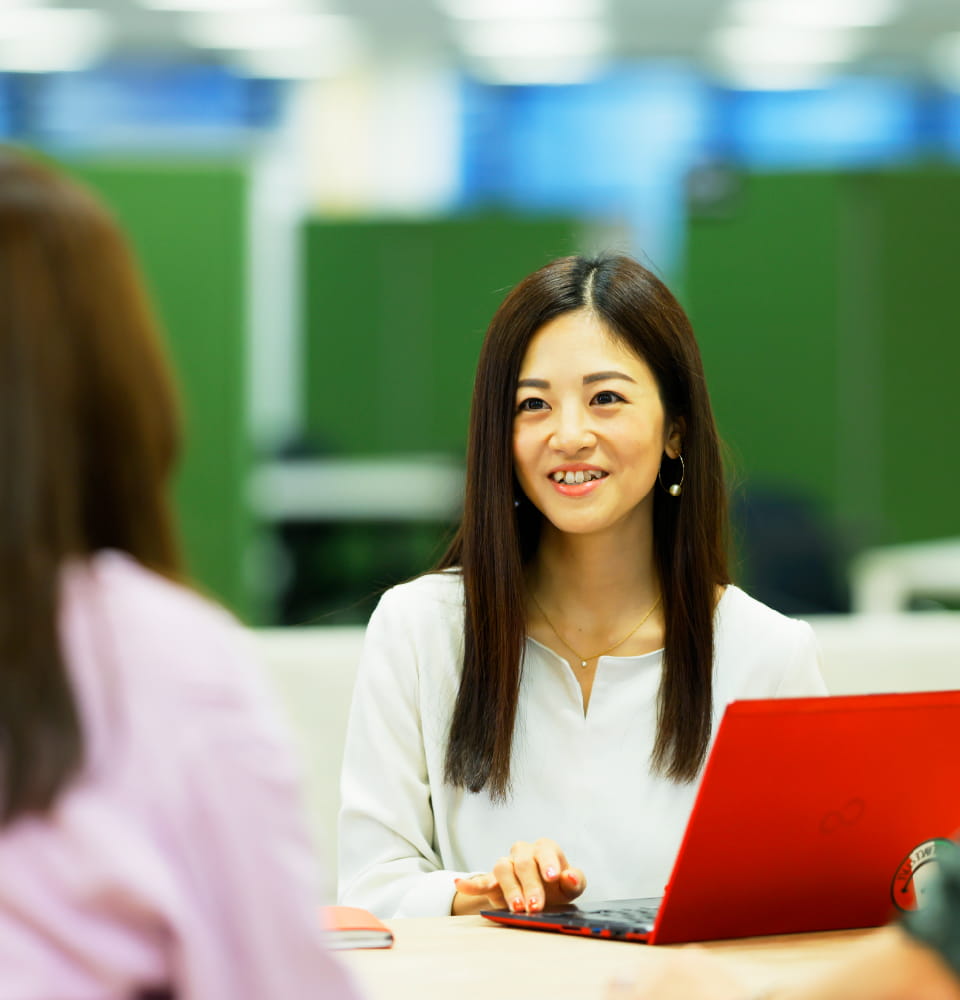 契約サービス部に配属され、保険料の団体扱いに関する業務に携わる。2018年に契約医務部へ異動して役員秘書を務めた後、部内異動で契約サポート課において新規契約業務を担う。その後、事務企画部のスマートセンターと兼務した後、2022年からはスマートセンターの専任となっている。