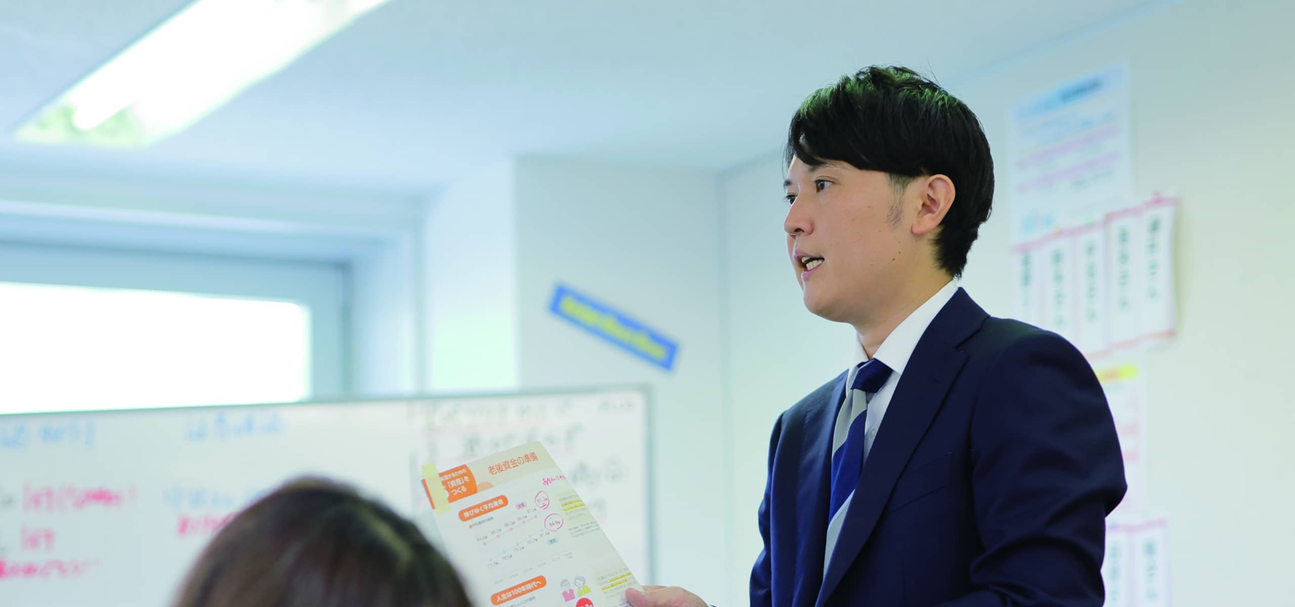船橋支社管轄の新浦安営業オフィスが抱えるお客さま数は約5,000名。そのお客さまを、オフィスに所属する20名の生涯設計デザイナーで担当する。オフィス長である前原は、生涯設計デザイナーの採用・育成や、市場分析、戦略立案をメインとしたオフィス経営業務を担う。育成に関わる立場として、オフィス内の誰よりも知識を保有しているべきだと前原は考える。