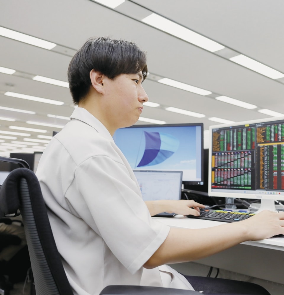 株式部の役割を端的に表現すると、株式の運用を通じた収益の獲得である。その中で深谷は、外国株式チームに所属している。少数精鋭のこのチームでは、意思決定の質を高めるためにチームメンバーとの議論を活発に行いつつ、情報収集から投資判断、売買執行までを基本的に一人で担っている。